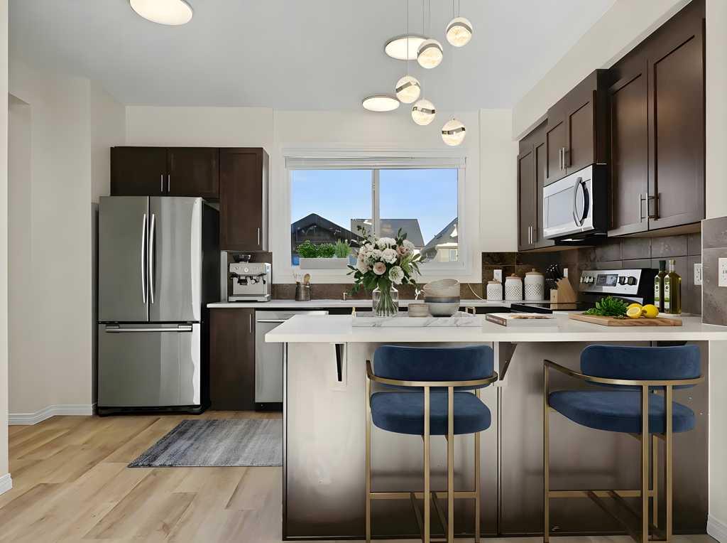 Lake Privileges in Mahogany! This "like new" two-storey Jayman-built home offers over 2,270 sq. ft. of renovated living space. The exterior features new sod and a new fence with two new gates. Inside, discover new quartz countertops throughout the kitchen and all bathrooms, complemented by new sinks, soap dispenser, and stainless steel appliances (brand new stove - never used)! The kitchen is further upgraded with high-end fixtures and a Kinetico water filtration system. The main floor shines with new lu...
