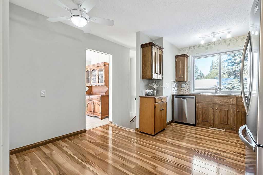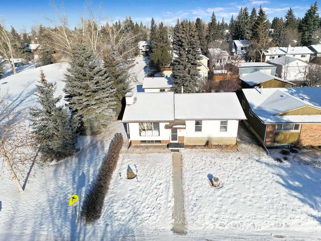 Here is your opportunity to own a bungalow on the highly sought-after Lock Crescent in Okotoks. Nestled away on a quiet, family-friendly area, beside Cedar Grove Park, and surrounded by mature trees, this home has been lovingly looked after by the same owners for over 48 years. Step inside the front door to a bright and sunny main floor living room complete with vaulted ceilings and soaring brick fireplace that connects to the large dining room. Enjoy meals with family while watching the birds and wildl...