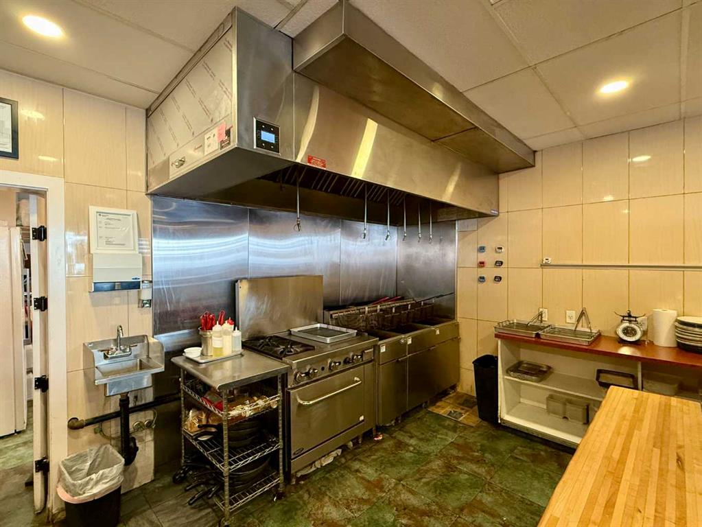 Location, Location, and Location! Incredible opportunity to purchase a fully licensed K.F.C (Korean style fried chicken) restaurant in a prime location. Strategically situated in a high-traffic strip mall with ample parking spaces across from Southland Leisure Centre, K-6 school, Junior high school, and a diamond field to attract lots of regular & walk-in customers. It also collaborates with neighboring popular tenants such as Second Cup, Little Caesars, DQ, Shoppers Drug Mart, 7-Eleven, gas station, liquor...