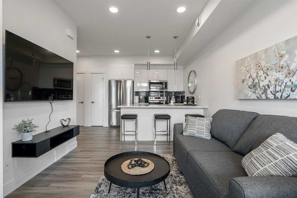 LOW MONTHLY CONDO FEES OF JUST $150.02 and comes with titled parking stall making this an exceptional value in Seton. This modern one-bedroom condo offers strong appeal in a nearly new building with an efficient layout and contemporary finishes that maximize functionality. The kitchen features quartz countertops, stainless steel appliances, and ample cabinetry. A well-sized bedroom, four-piece bathroom with soaker tub and quartz vanity, private patio, and in-suite laundry complete the unit. Additional benef...