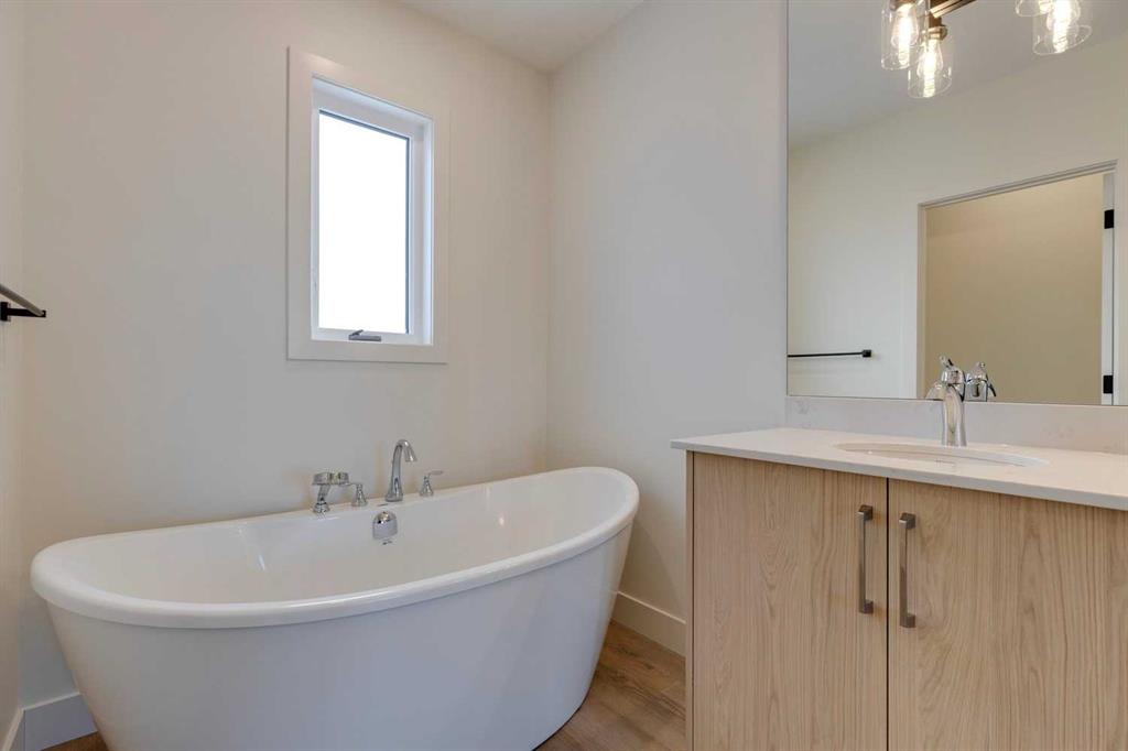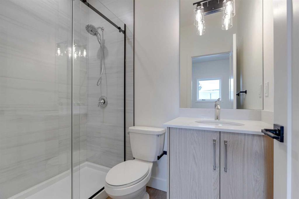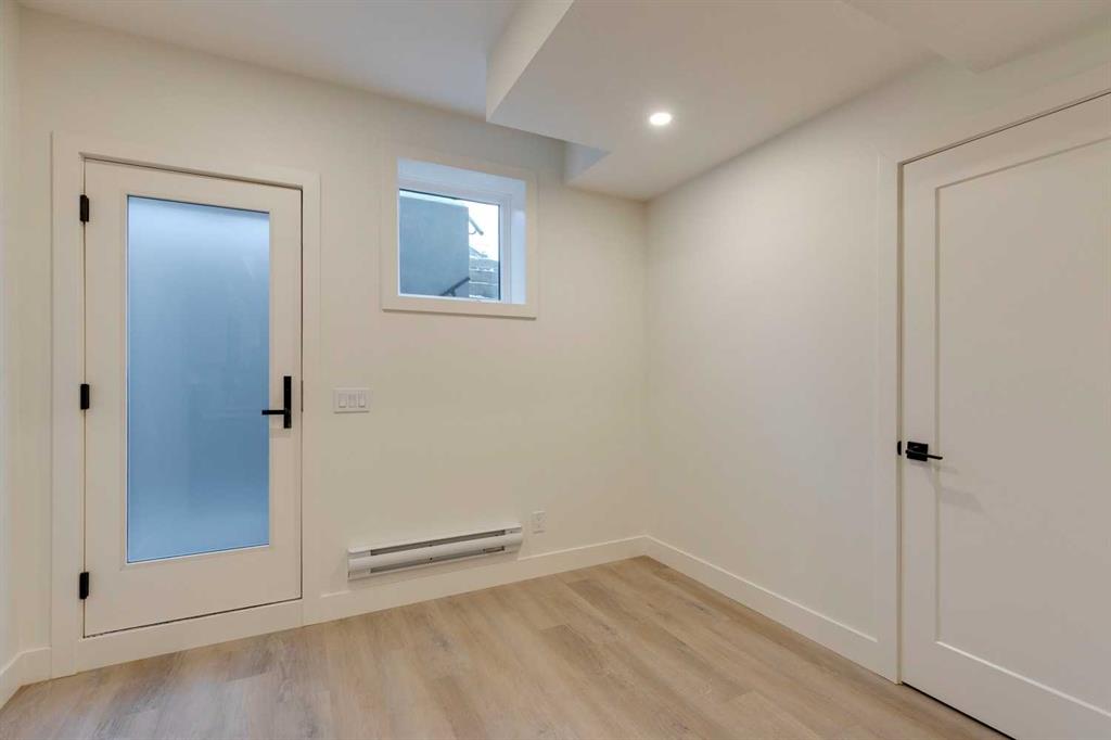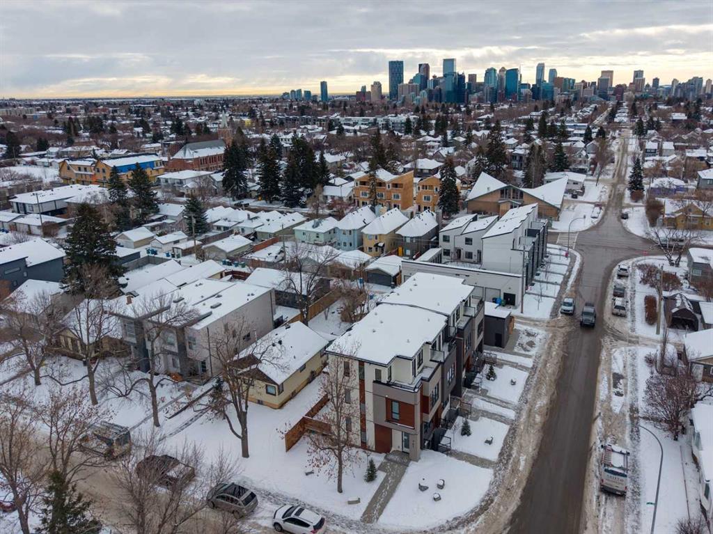 Mount Pleasant - 2122 7 Street NW: Welcome to this beautiful townhome offering 3 bedrooms, 4.5 bathrooms, a single-car garage, and over 2,100 sq ft of developed living space. Designed by respected Calgary architect John Trinh and Associates, this project showcases high-level craftsmanship, thoughtful material selection, and exceptional attention to detail throughout. The main floor features a spacious front entry, a bright living room with an electric fireplace and built-in shelving, and a central kitchen ...