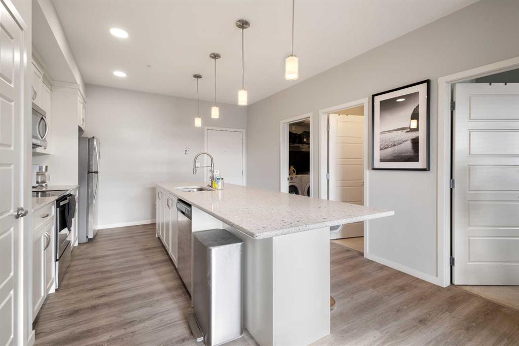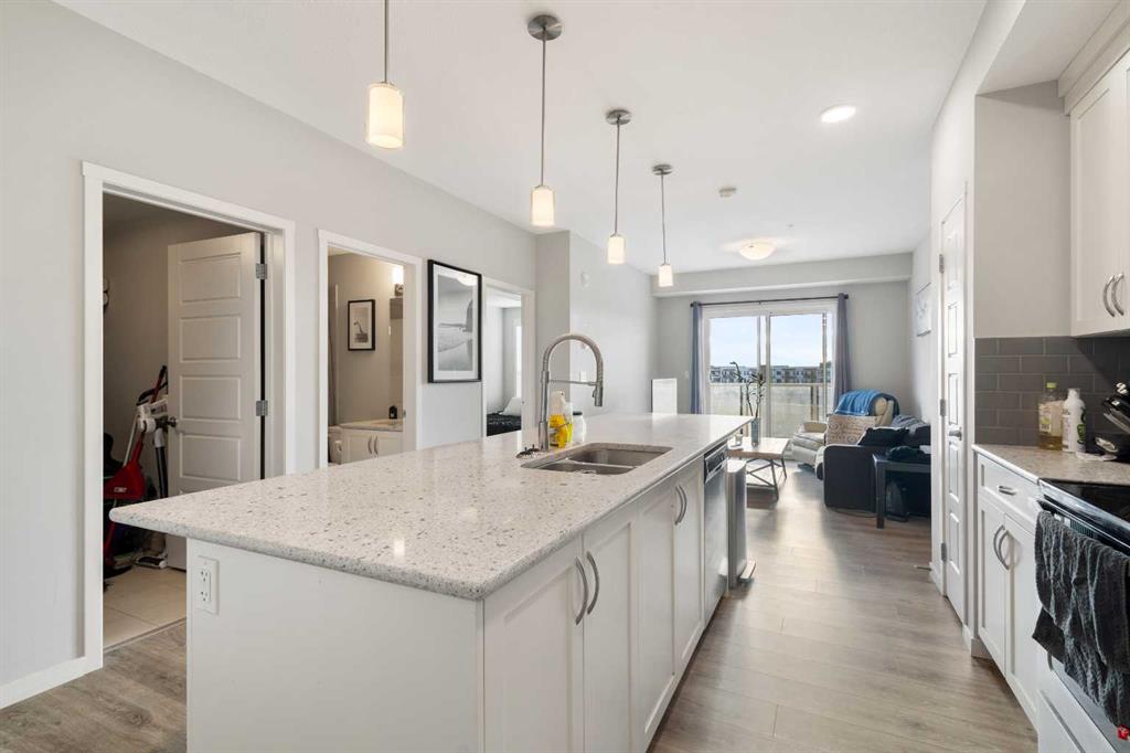 Welcome to Seton Park, one of the most convenient and desirable locations in South Alberta. This newer, beautifully upgraded unit features 9-foot ceilings, an extended island with granite countertops, and raised cabinetry with elegant crown molding. The south-facing balcony floods the living room and bedrooms with abundant natural light, creating a bright and welcoming space. The home offers two full-size bathrooms, titled parking, and the added convenience of heat and water included in the condo fees. Enj...