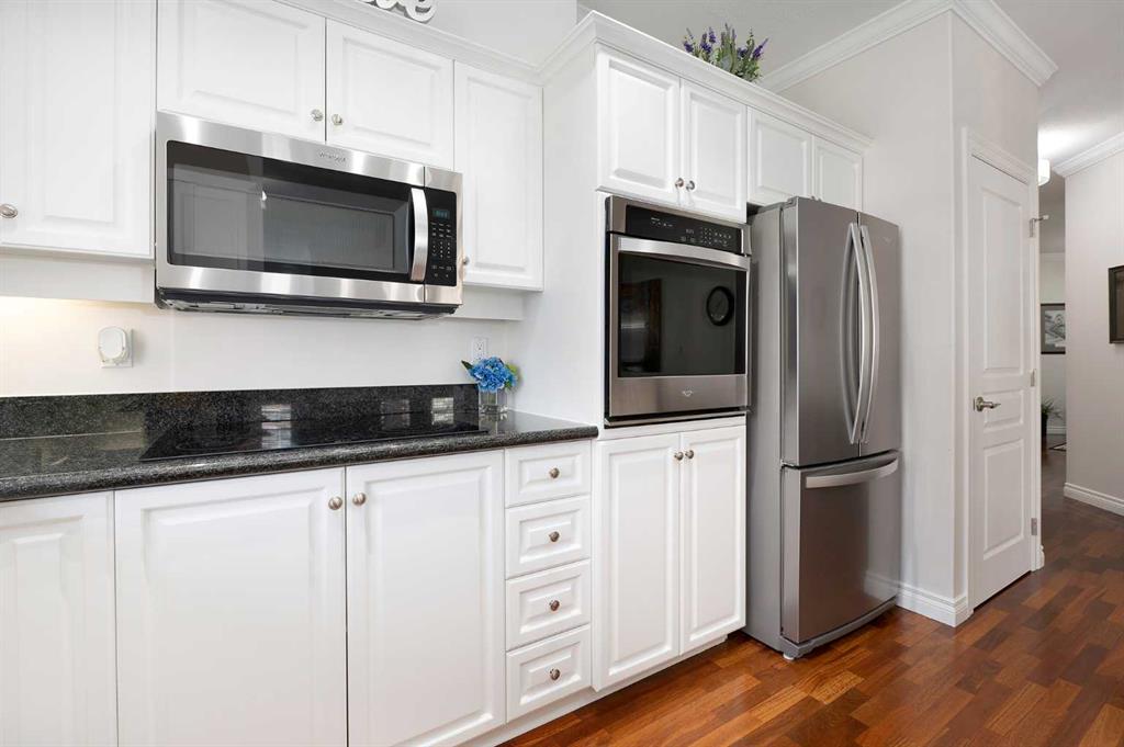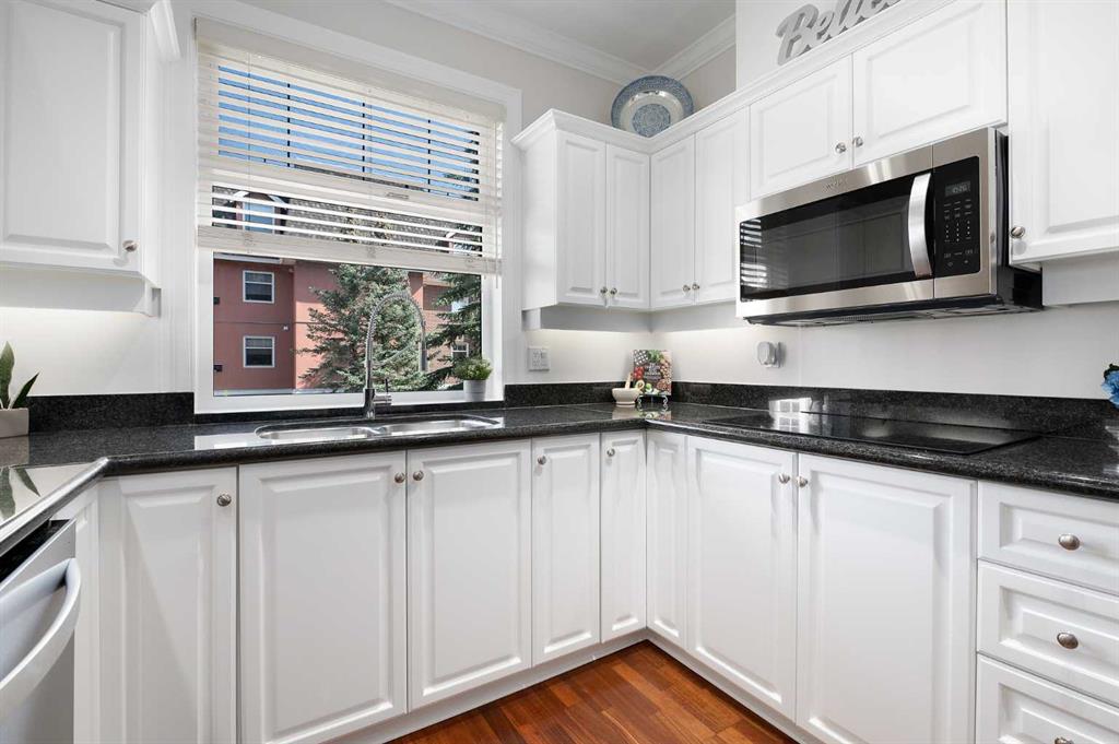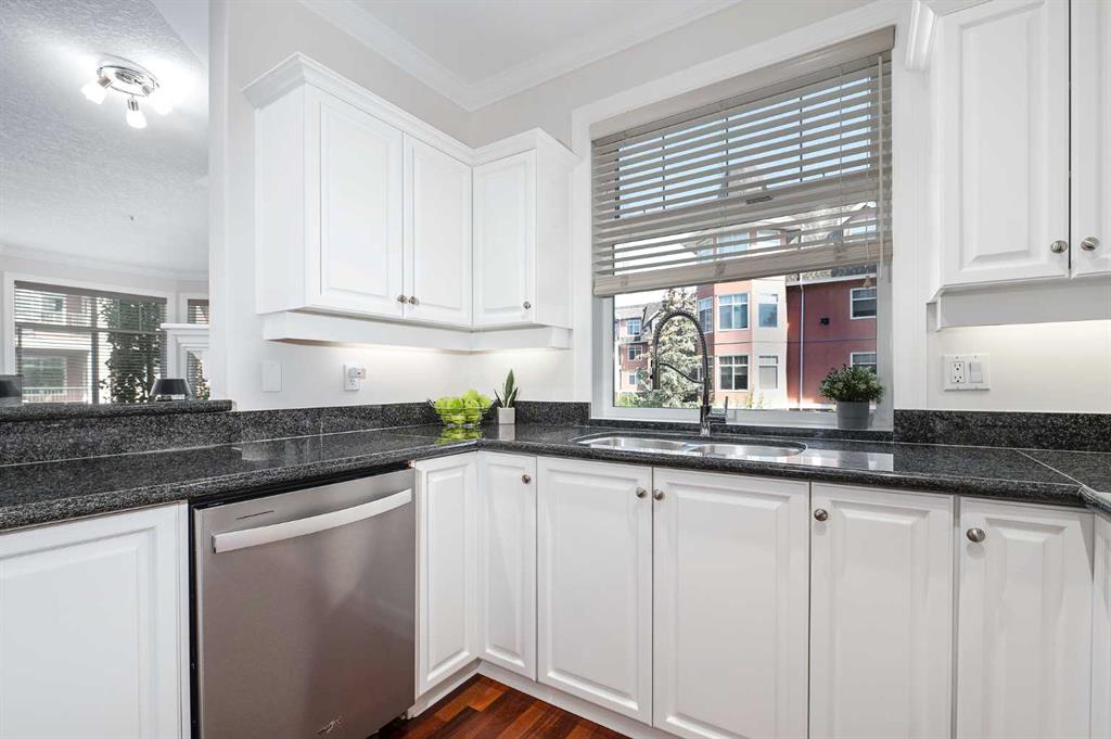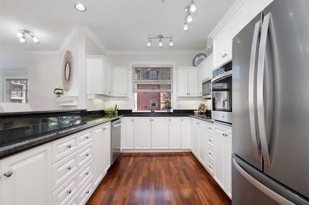 Immaculate residence offering comfort, and modern updates throughout. Nine foot internal ceilings, hardwood floors, new bedroom carpet and abundant natural light from twelve windows, including one above the kitchen sink. The gourmet kitchen features granite counters, stainless steel appliances, a large walk-in pantry, ample kitchen cupboard storage. Patio doors leading out to deck from dining room overlooking the internal courtyard with gas BBQ connection. The bright living room is surrounded by windows, an...