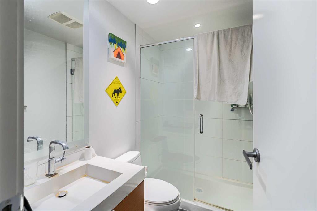 Fully furnished modern 1 bed/1bath condo unit on the "Flats Tower" of The Prestigious Waterfront Condo, Calgary's upscale Downtown neighborhood. Open concept floor plan, 9' ceilings, floor to ceiling windows. End unit & balcony is exposed to the view of the beautiful courtyard. Kitchen is fully equipped with high-end stainless steel appliances. Quartz central island & countertop. Full heights cabinetry. Bedroom has built-in head board, double bed-frame & 2 night tables. In-suite laundry & air conditioned. U...