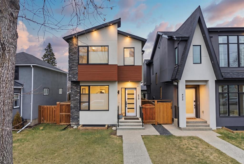 Welcome to 420 14 Avenue NE, an impeccably designed detached infill located on a quiet, tree-lined street in the heart of Renfrew, one of Calgary’s most sought-after inner-city communities. Boasting 3,100 sqft of luxuriously finished living space, this beautifully appointed 4 bedroom, 3.5 bathroom home combines elegant finishes with functional family-friendly design. The main floor features soaring 10’ ceilings, engineered hardwood flooring, custom lighting, and an open-concept layout ideal for entertaining...