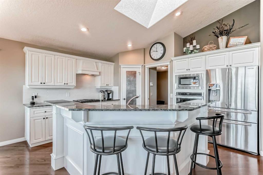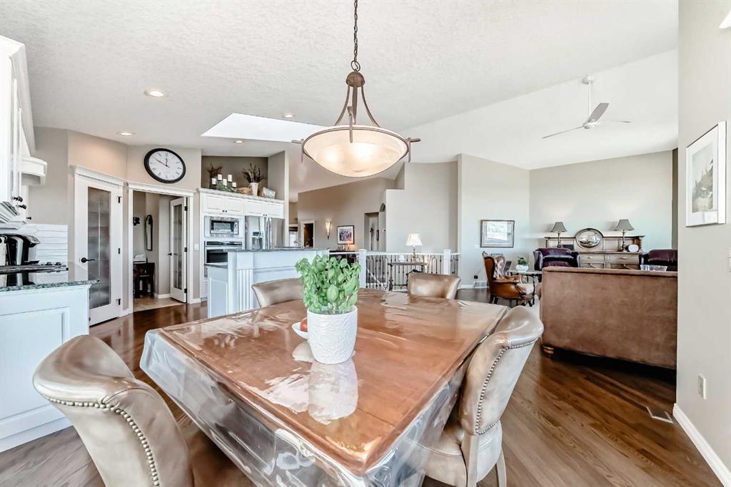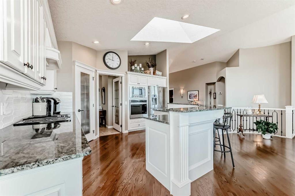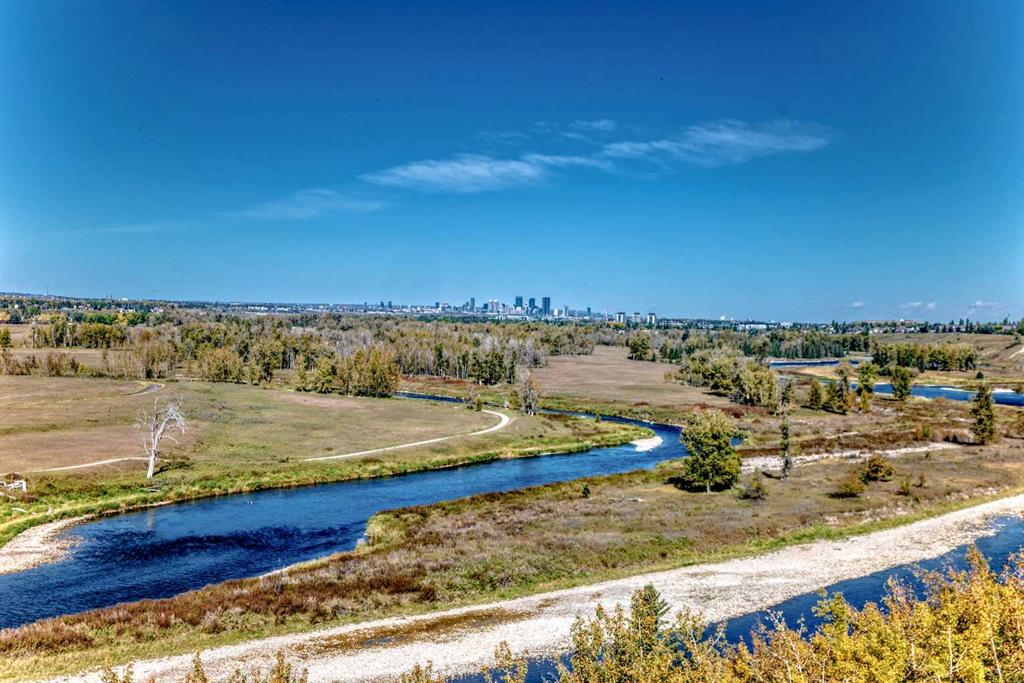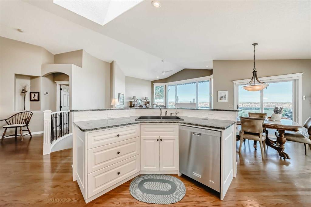 Overlooking the Bow River and Fish Creek Park, this stunning estate bungalow offers one of the most breathtaking views imaginable. From the sparkling city skyline to the sweeping river valley below and majestic Rocky Mountains beyond, the scenery is truly unmatched. The main level features an open concept design with a formal dining room, a granite kitchen with a large island, breakfast bar, stainless-steel appliances, an expansive living room with a cozy gas fireplace and a wall of windows to showcase the...