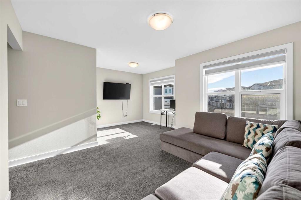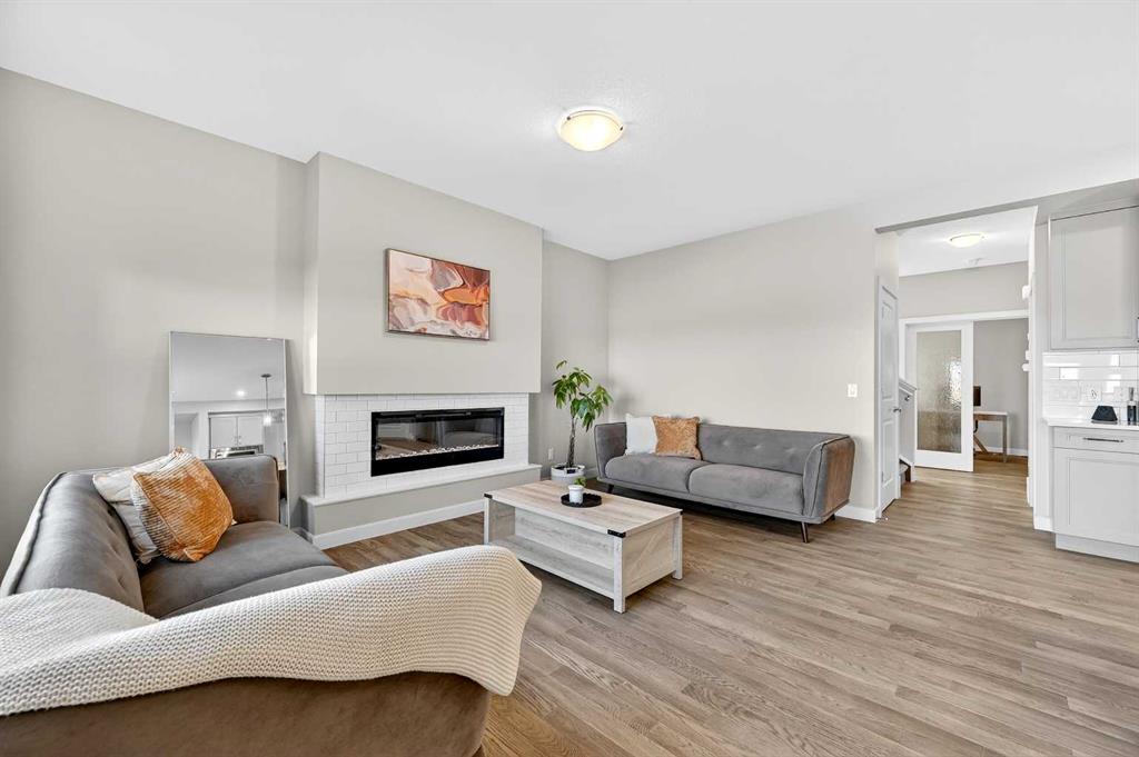 Welcome to 77 Belvedere Drive SE, a beautifully designed detached home that perfectly balances modern luxury with a functional layout, situated on a premium lot backing onto an undeveloped pathway system. The main floor features an open-concept chef’s kitchen boasting elegant grey cabinetry, quartz countertops, a gas range, and a massive island with a breakfast bar, all supported by a convenient walk-through pantry. Hardwood and tile flooring lead you to an inviting living room anchored by a sleek linear ga...